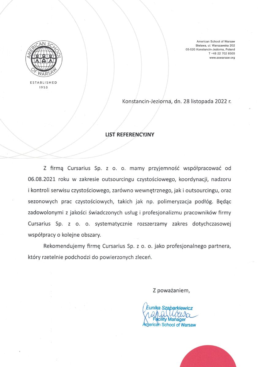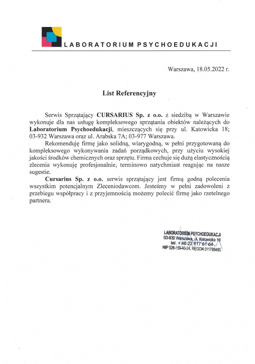 ReferencjeFirma sprzątająca Cursarius świadczy szeroki zakres usług sprzątających na terenie miasta Warszawa oraz okolic. Jeden z głównych aspektów naszej działalności stanowi sprzątanie powierzchni biurowych.